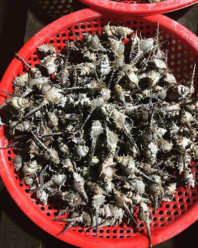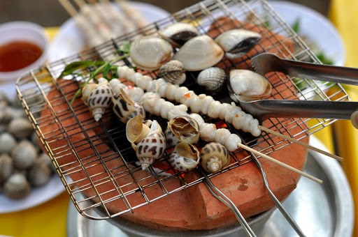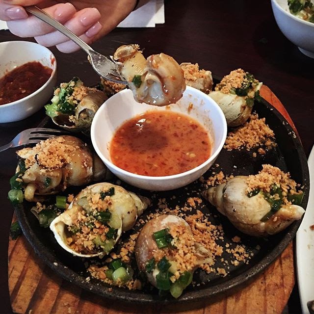 Bạn có thể chọn ốc gai nướng mỡ hành, ốc gai nướng mọi, ốc gai nướng muối ớt,... Thịt ốc gai có màu trắng cục, to tròn. Khi ăn sẽ thấy vị rất độc đáo. Hương vị này là sự tổng hòa của sự béo, dai dai, giòn giòn,... cực kỳ dễ nhớ. Sẽ cực kỳ thú vị nếu lịch trình du lịch Phú Quốc có 1 buổi để vừa ngồi tám chuyện với bạn bè, vừa dùng tăm tre nhọn đầu khều ốc gai nướng mỡ hành thì quả là trải nghiệm thú vị.