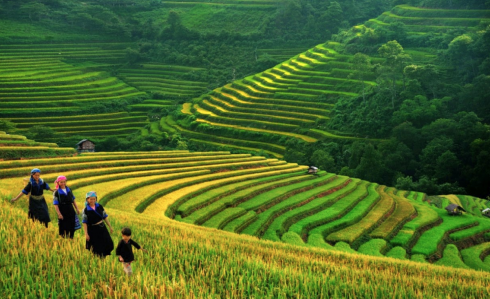 Du lịch Sapa mùa thu bạn sẽ được chiêm ngưỡng những thửa ruộng lúa chín vàng uốn quanh triền đồi hùng vĩ, đẹp tráng lệ