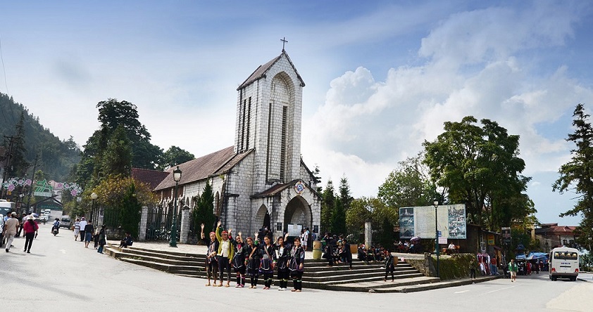 Từ Hà Nội du khách có thể ngủ 1 đêm trên tàu buổi sáng sẽ tới Lào Cai sau đó tiếp tục đi khoảng 40km là tới thị trấn Sapa. Ngay tại trung tâm Sapa du khách có thể tham quan nhà thờ đá, khu du lịch núi Hàm Rồng, chợ Sapa và thưởng thức ẩm thực Sapa về đêm.
